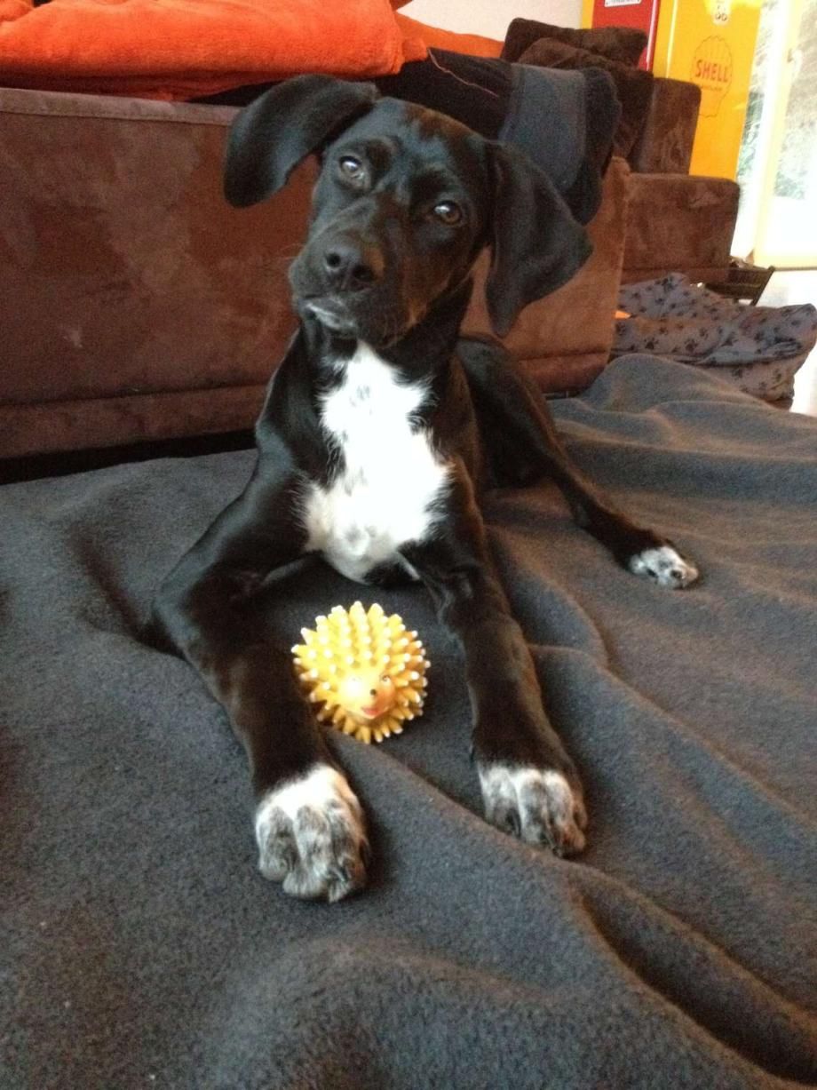 Der 11 kg schwere und gut 4 Monate alte Welpe ist munter und interessiert, der Untersuch verläuft unauffällig.