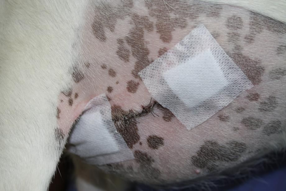 Nach zehn Tagen werden die Fäden gezogen, die Wunde ist schön verheilt.