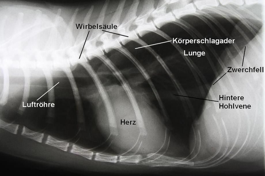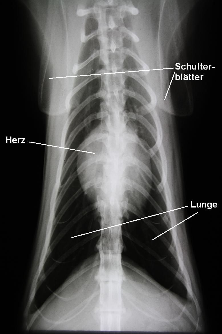 Um auszuschliessen, dass die vermutete Krebsgeschwulst Ableger in die Lungen gestreut hat, werden Lungenröntgen angefertigt. Glücklicherweise sind keine Lungenmetastasen sichtbar.