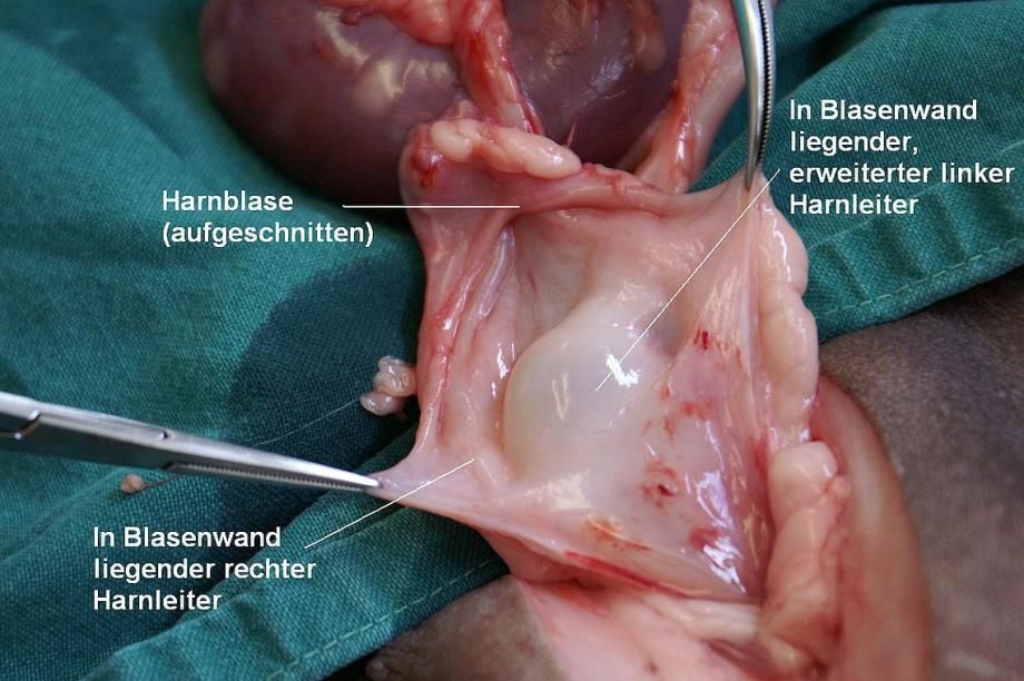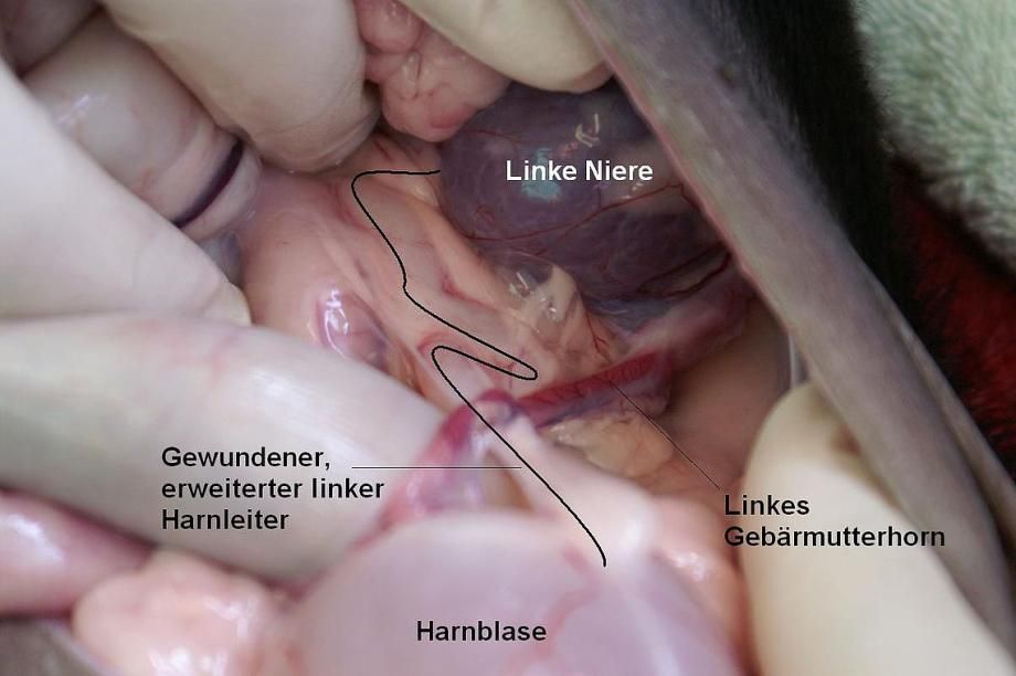 Aufgrund dieses Befundes entscheidet sich die Besitzerin zur Euthanasie des Tieres. Ektopische Ureteren können grundsätzlich chirurgisch therapiert werden - allerdings ist je nach Ausprägung der Missbildung und den entstandenen Folgeschäden eine Therapie mitunter technisch sehr schwierig, kostenaufwendig oder resultiert in einer ungenügenden Verbesserung der Situation.
