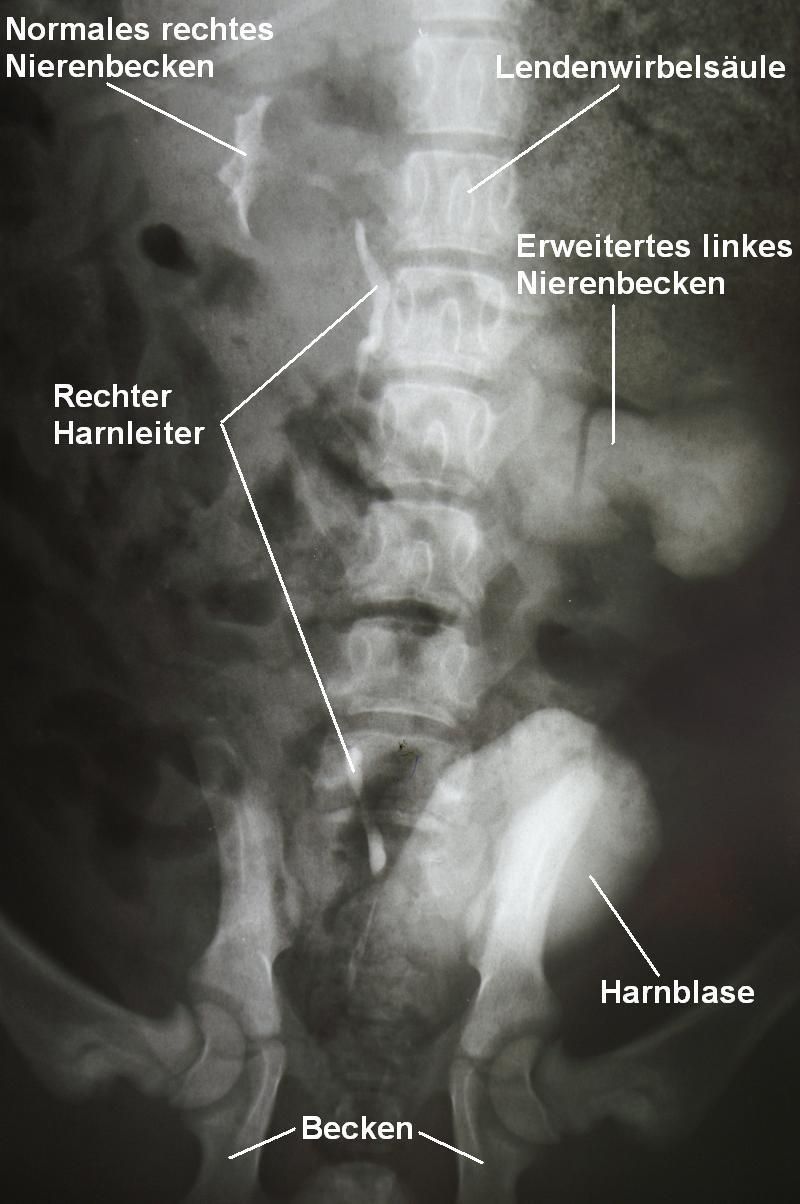 Zur genaueren Abklärung des Verdachts wird ein sogenanntes IVP (intravenöses Pyelogramm) angefertigt. Hierzu wird dem Hund intravenös ein Kontrastmittel injiziert, welches über die Nieren ausgeschieden wird und so auf einer Röntgenaufnahme die Nieren, die Harnleiter (Ureter) und die Blase verstärkt darstellt. In einem "normalen" Röntgen sind die zu untersuchenden Harnleiter nicht erkennbar.