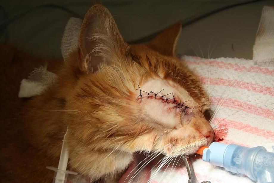 Das Auge wird komplett entfernt und die Wunde verschlossen. Die Operation verläuft komplikationslos, und "Bianca" erholt sich gut vom Eingriff. 10 Tage später werden die Fäden gezogen; die Wunde ist schön verheilt.