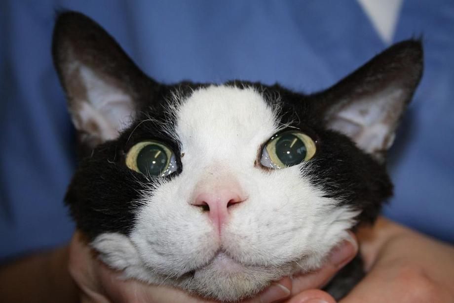 Schon auf den ersten Blick ist ersichtlich, was die Niesanfälle von "Leslie" verursacht: Aus dem rechten Nasenloch ragt ein Grashalm! Um zu vermeiden, dass sich der Kater während der Entfernung des Fremdkörpers wehrt und so ein Abreissen des Halmes riskiert wird, erhält "Leslie" eine leichte Narkose.
