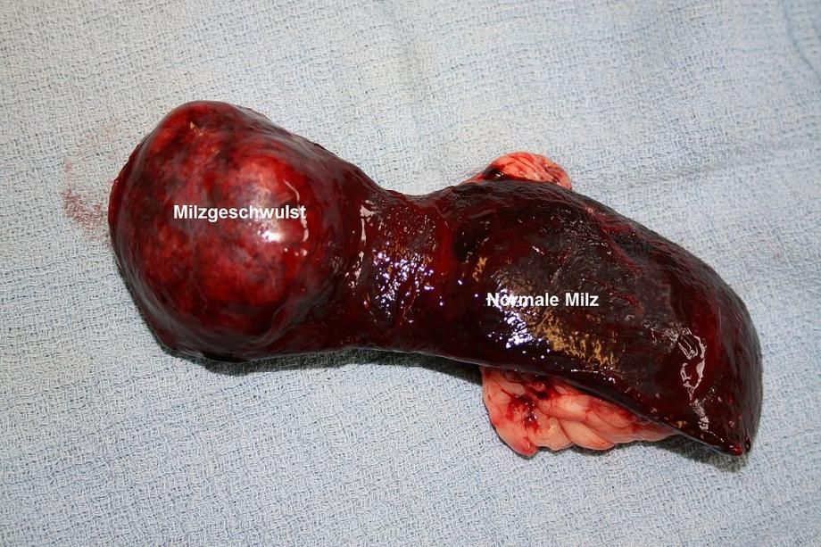 Die Milz ist ein Organ, welches beim Hund diverse Aufgaben erfüllt, aber dennoch nicht lebenswichtig ist und nötigenfalls entfernt werden kann. Neben der Entfernung von alten roten Blutkörperchen aus dem Blut und der Mitarbeit bei der Immunabwehr kann die Milz auch neue rote Blutkörperchen bilden und Blut speichern. Mehrere und häufig bösartige Krebstypen können in der Milz vorkommen; andererseits können bei älteren Hunden auch meist harmlose sogenannte Regenerationsknoten gefunden werden: Bei diesen Geschwulsten handelt es sich um gutartige Neubildungen von Milzgewebe, welche mittels Ultraschall nicht definitiv von Krebsgewebe unterschieden werden können. Meistens verursachen diese Knoten keinerlei Beschwerden; bei Oryad scheint der Knoten aber Ursache für die beobachtete schnelle Ermüdbarkeit gewesen zu sein.