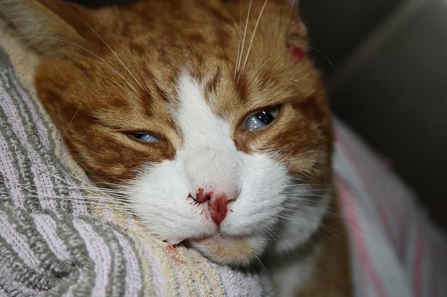 Die Extraktion verläuft erfolgreich, und es zeigt sich keine Lähmung des gefährdeten Gesichtsnervs. Hingegen blutet die Katze nach der Entfernung des Polypen kontinuierlich aus dem Ohr - offensichtlich wurde bei der Extraktion ein grösseres Blutgefäss verletzt oder aber die Katze weist eine erhöhte Blutungsbereitschaft (z.B. durch Konsum von an Rattengift verendeten Mäusen) auf. Da alleiniger Druck auf das Ohr und Auflegen von Eis keine Blutstillung bewirkt, wird das Ohr tamponiert: Ein Tupfer wird in den Gehörgang eingeführt und eine Naht in die Ohrmuschel gelegt, welche den Tupfer mit Druck in den Gehörgang presst. Ausserdem erhält die Katze zum Ausgleich des Blutverlusts eine intravenöse Infusion sowie Antibiotika und Schmerzmittel.